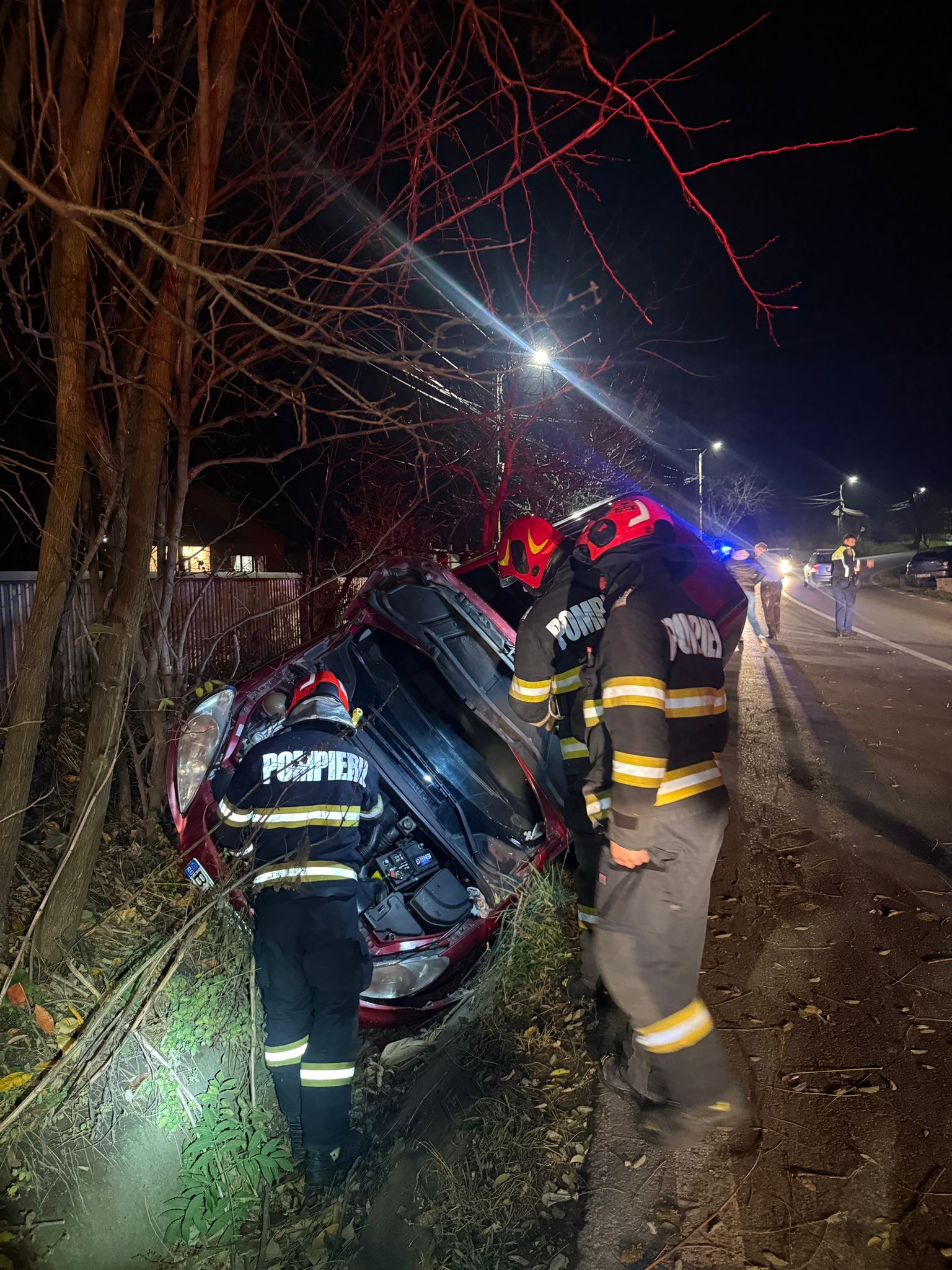 Aceștia au constatat faptul că autoturismul era în afara părții carosabile, răsturnat pe o parte și că nu erau persoane încarcerate.